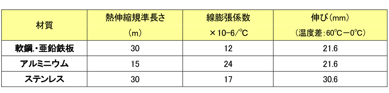 伸び=線膨張係数×温度差×施工の長さ